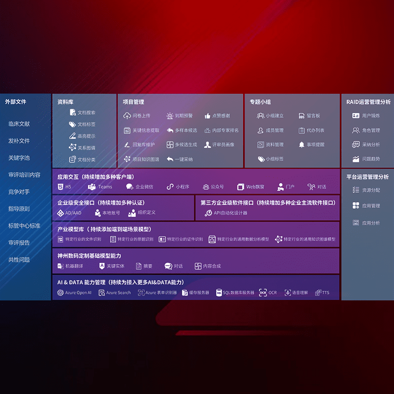 医疗器械产品上市前,,,,要熟悉严格与繁复评审标准,,整理分析监管机构指导文件中的海量信息。。企业急需一个智能化解决方案,,,,提升知识管理效率,,,,提高评审通过率,,,以提升其市场竞争力。。。